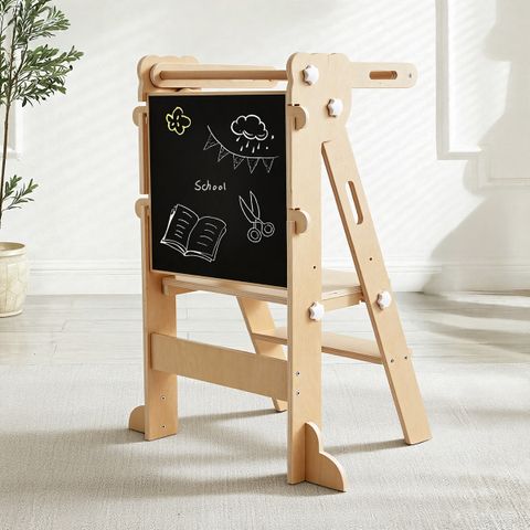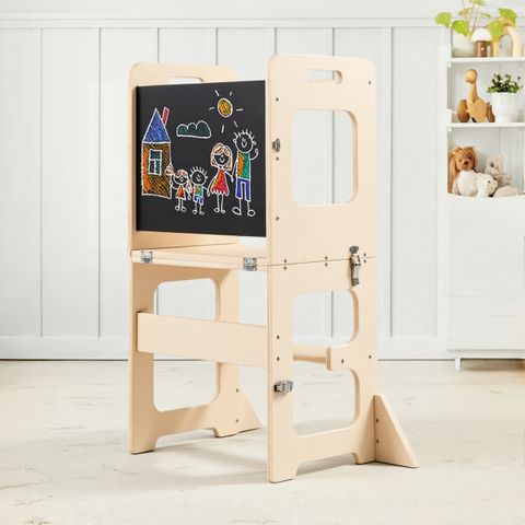 Faltbarer Lernturm & Montessori-Küchenturm (Holzfarbe)