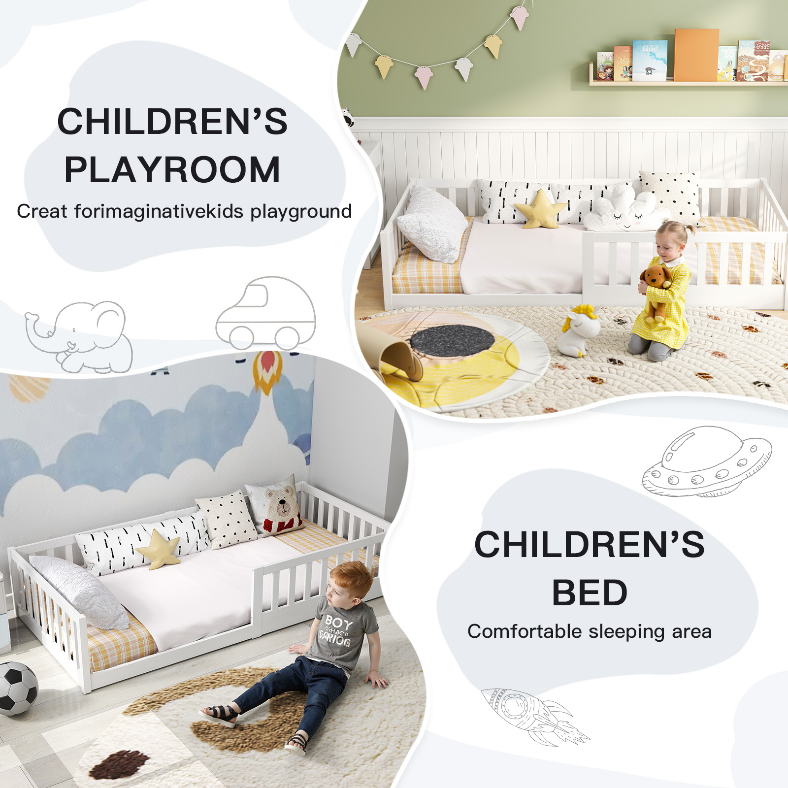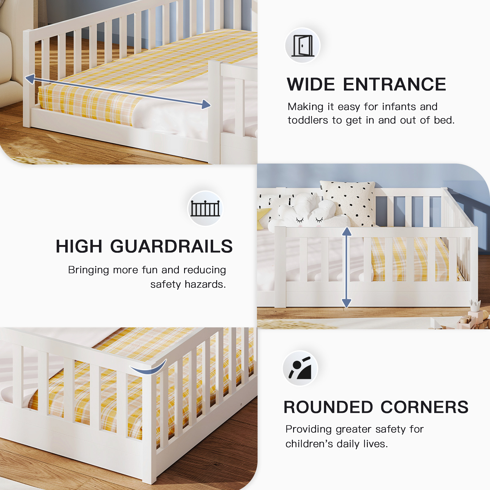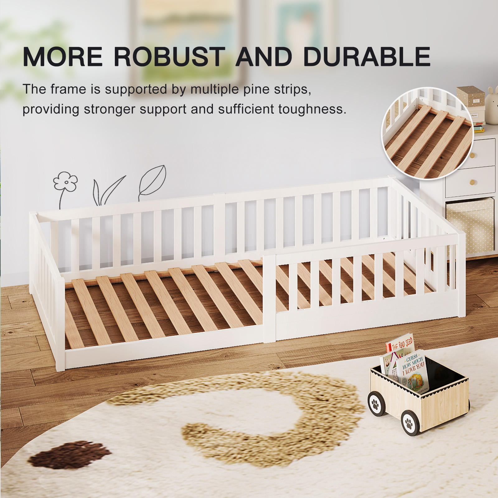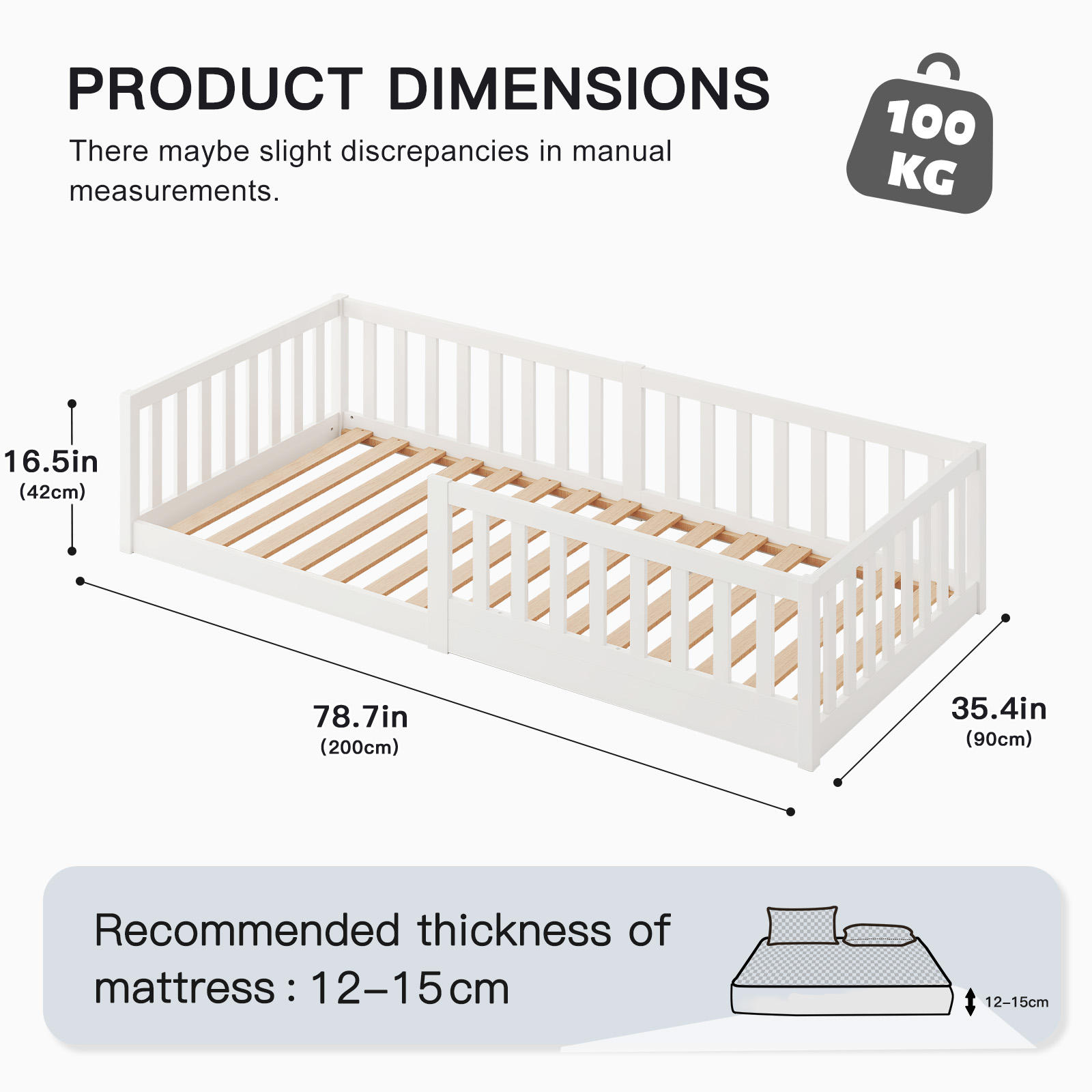 Sturdy, safe children’s bed with slatted support, low height, smooth edges, easy assembly, multiple sizes, minimalist design — comfort and independence for kids.