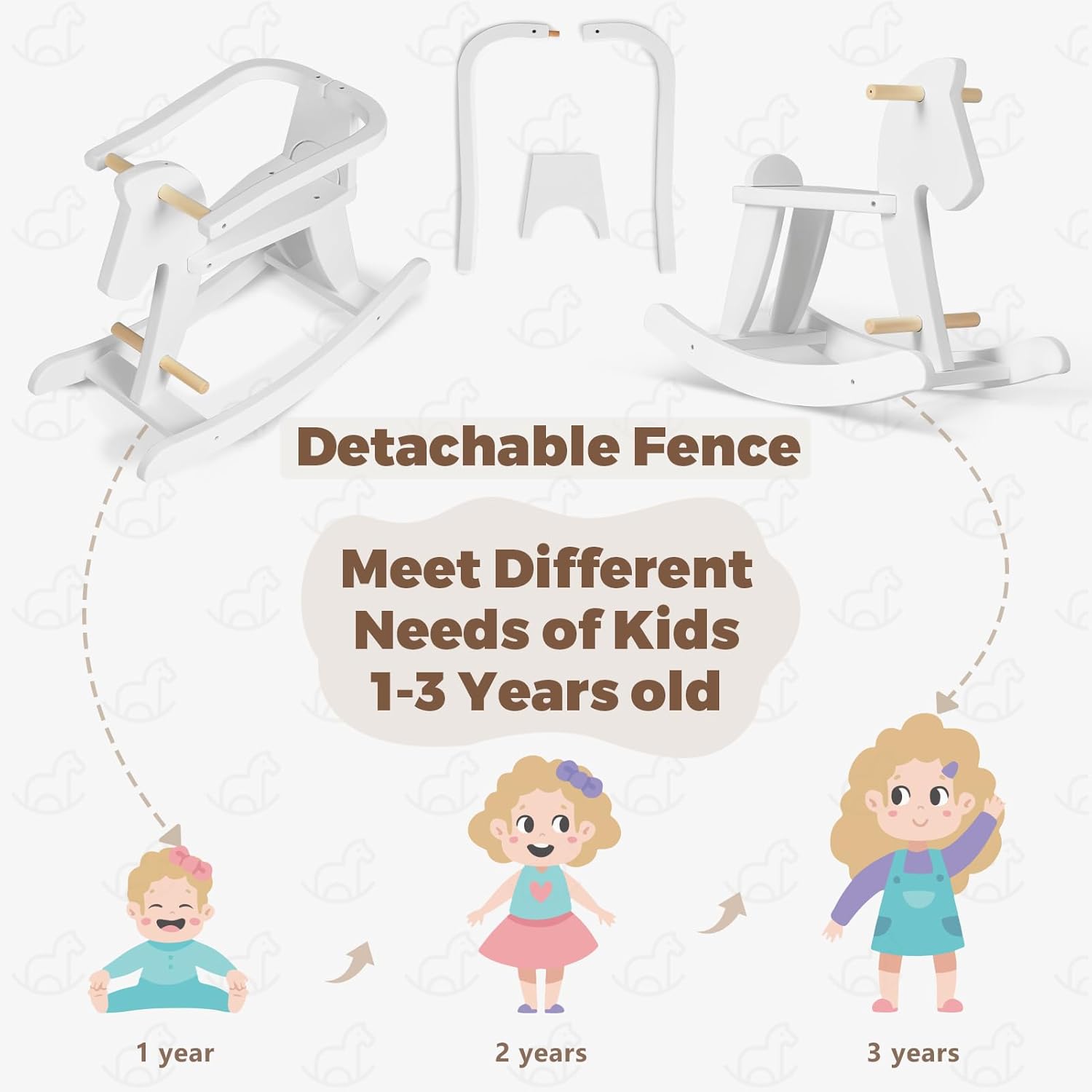 White rocker toy with a detachable armrest design and a gentle rocking fun for kids 1–3Y.